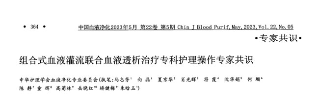 组合式血液灌流联合血液透析治疗专科护理操作专家共识