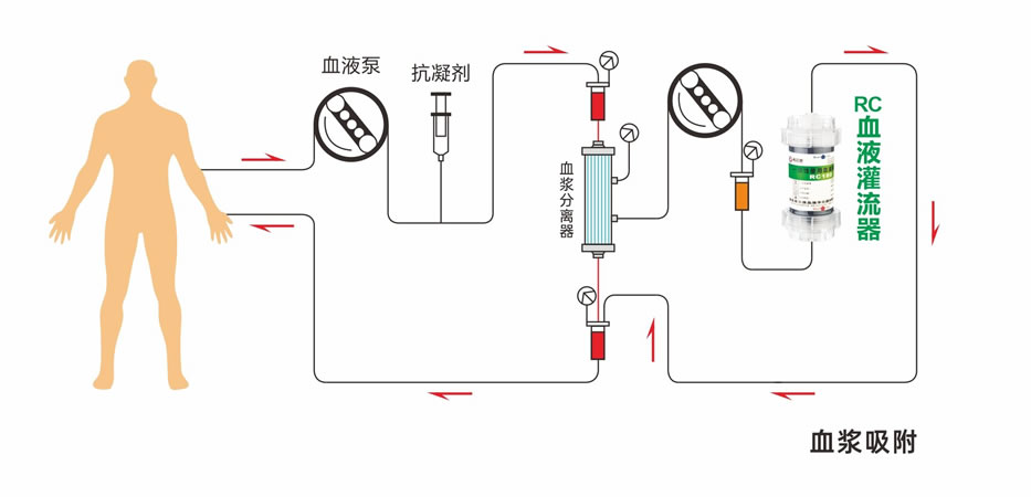 使用RC150 / RC180 / RC250进行全血灌流或血浆灌流;或CRRT加灌流