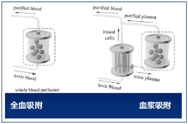 血液灌流/血液吸附主要是利用体外循环吸附剂与血液相互接触,通过范德华力、静电和(或)疏水键等相互作用特异性或非特异性地吸附炎症因细胞因子及内毒素。