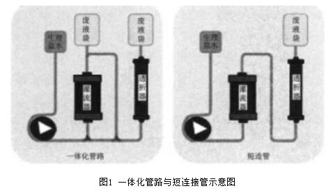 目前常用于组合式血液灌流联合血液透析治疗的管路有2种(图1),分别为组合型人工肾一体化体外循环管路、透析治疗体外循环管路联合短连接管。