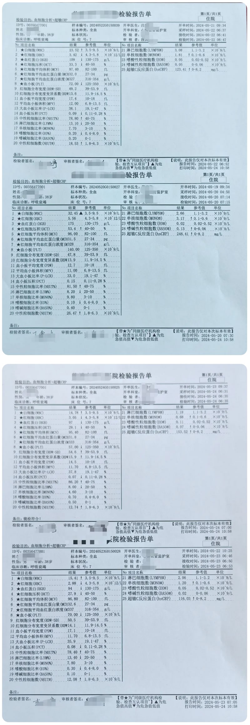 患者白细胞计数在CRRT+HP+ECMO治疗过程中显著下降。